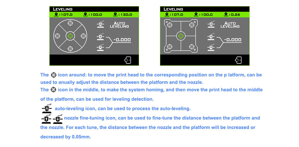 Lerdge Board verwendet eine nichtlineare Nivellierungsmethode mit Matrixgitter für die automatische Nivellierung. Der Vorteil dieser Nivelliermethode besteht darin, dass sie auf einer nichtlinearen Ebene nivellieren kann, z. B. auf einem gedruckten Leiterplattenbett mit unebener Oberfläche.