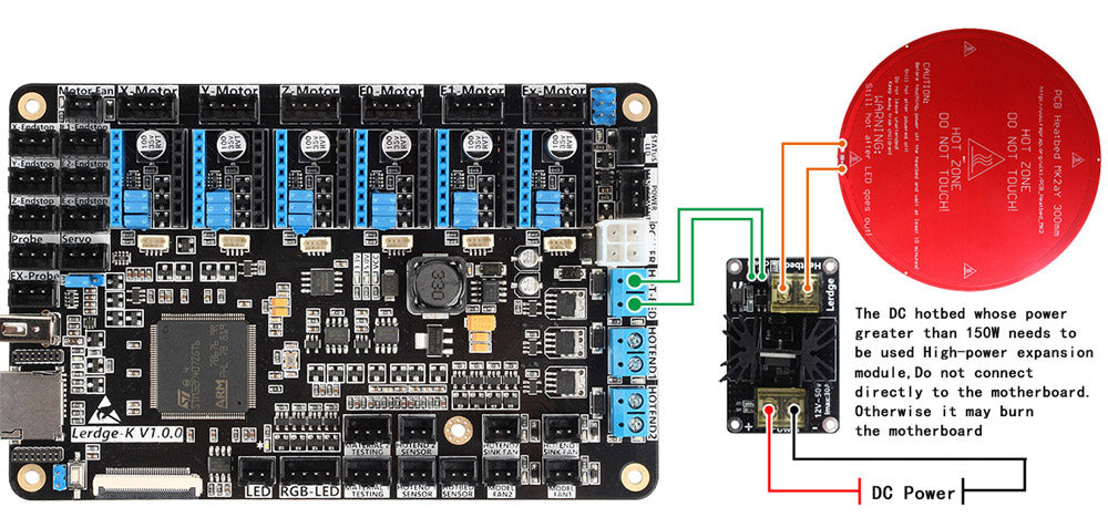 Note: If you use in Lerdge-X board, you need to use a hot bed, please buy a  high-power MOS module and a hotbed adapter module .