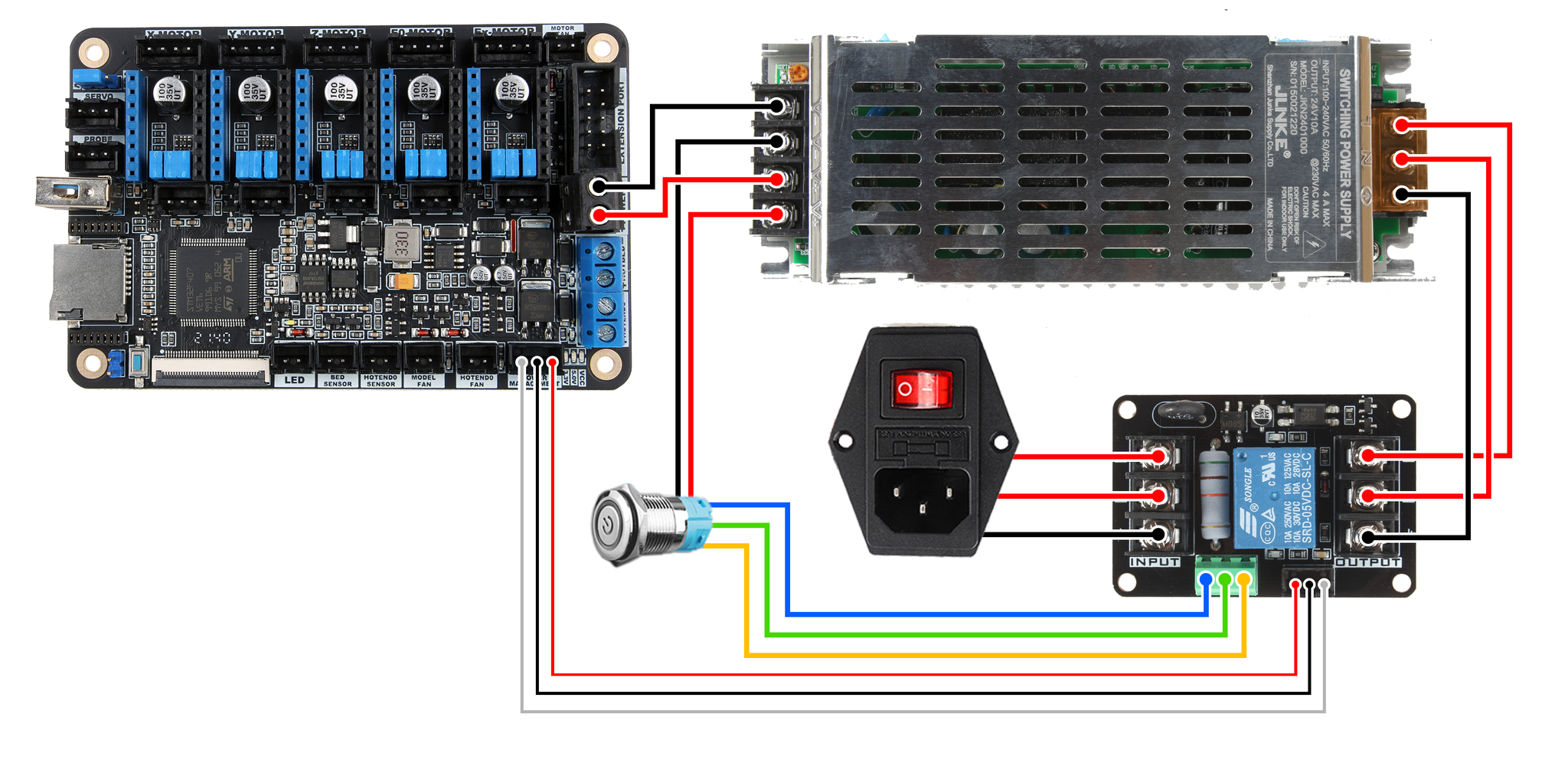 The heated bed with a power of no more than 150w can be connected directly to the motherboard. If the heated bed power is more than 150W, please use a high-power MOS hotbed module.